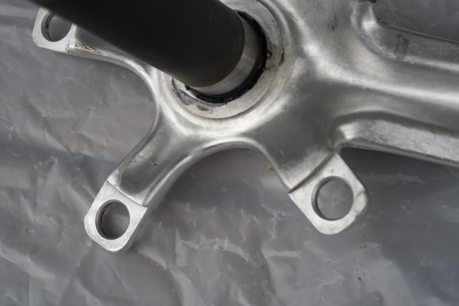 漬け過ぎた左側のクランクはスマットという黒いカスが表面に発生した